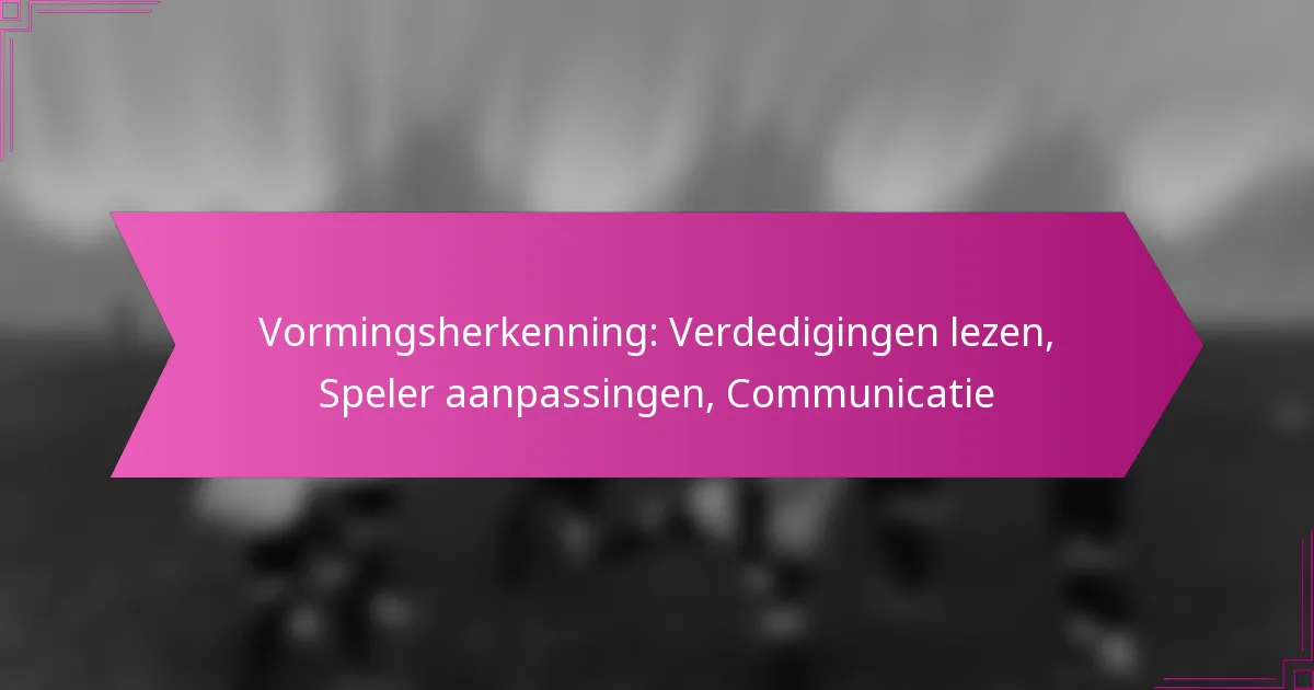 Formatieherkenning omvat het analyseren van de positionering en bewegingen van spelers om hun intenties en strategieën te voorspellen. Het is essentieel voor zowel offensieve als defensieve acties, waardoor teams hun tactieken in real-time kunnen aanpassen. Het herkennen van formaties kan leiden tot betere besluitvorming en verbeterde communicatie tussen teamgenoten.